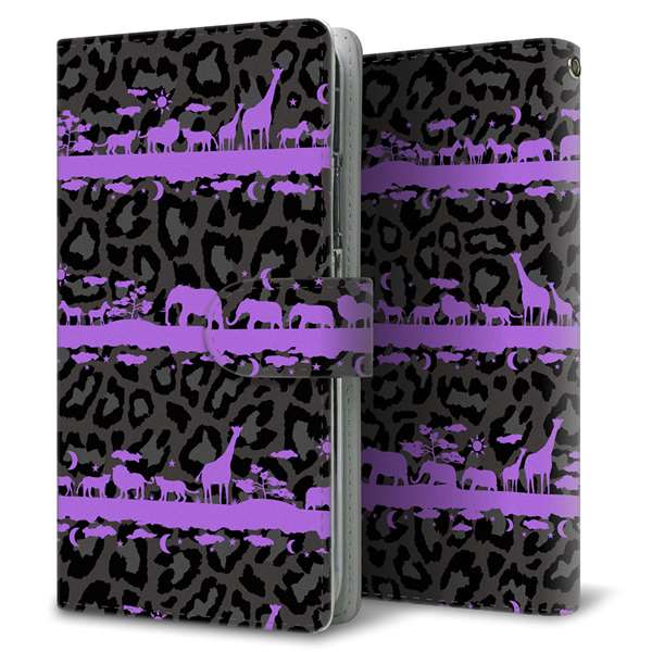 au エクスペリア XZs SOV35 高画質仕上げ プリント手帳型ケース(通常型)【AG876 サバンナアニマルヒョウ柄(黒×パープル)】