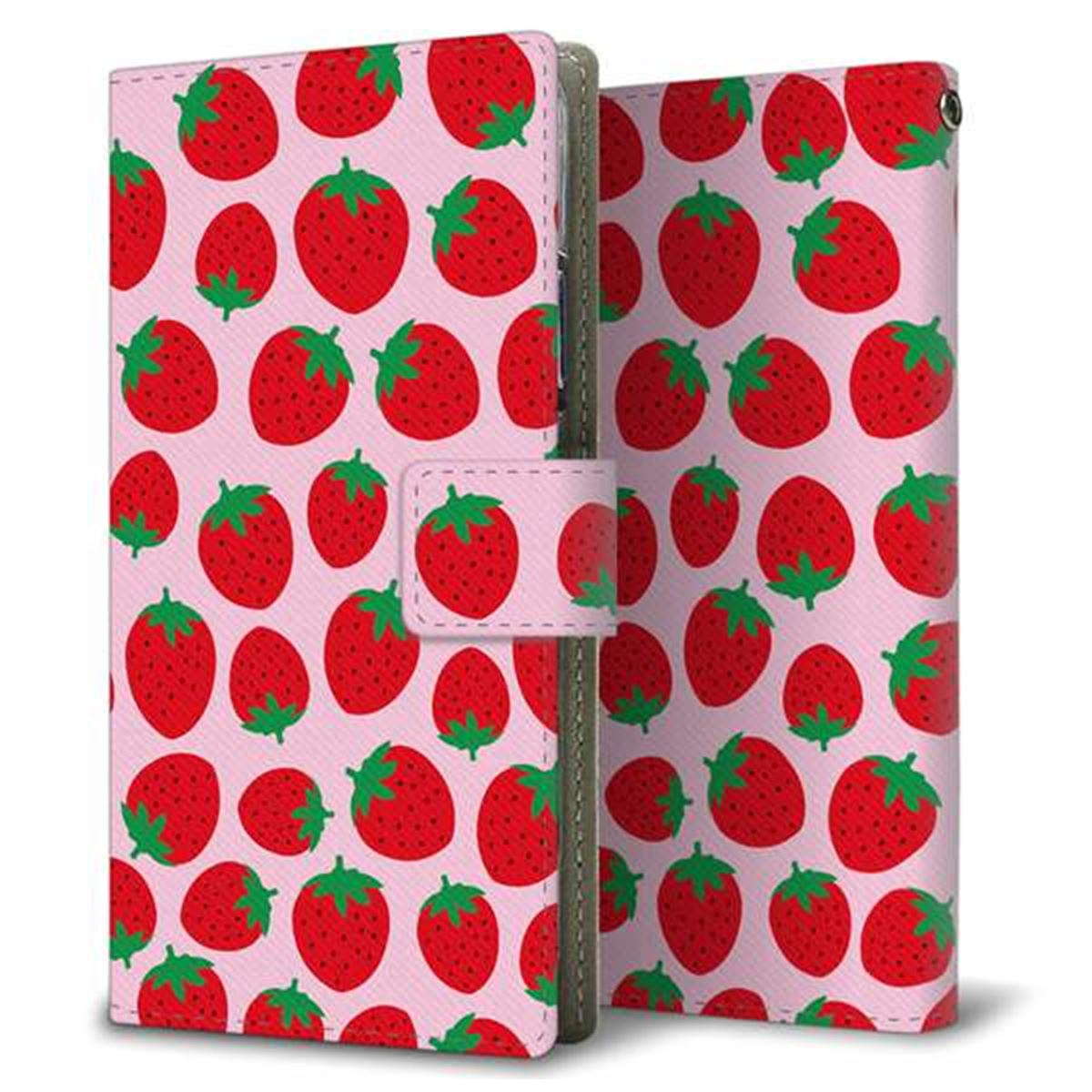 au エクスペリア XZ1 SOV36 画質仕上げ プリント手帳型ケース(薄型スリム)【SC813 小さいイチゴ模様 レッドとピンク】