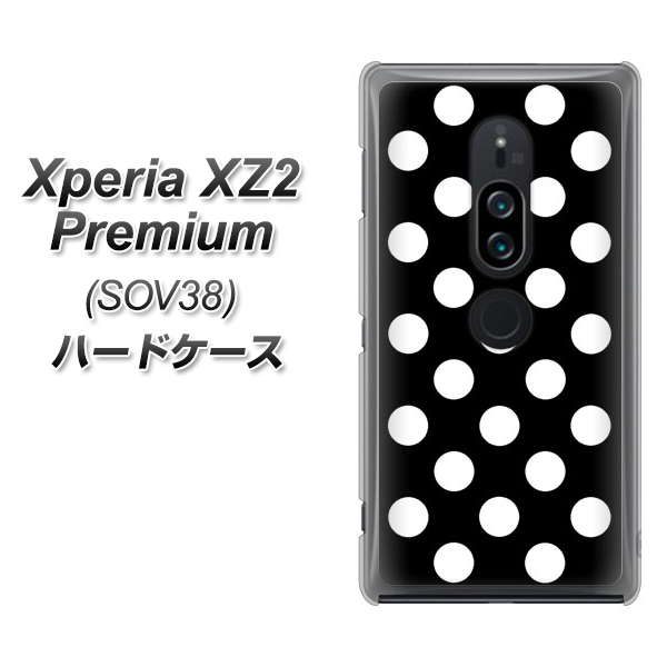 au エクスペリア XZ2 プレミアム SOV38 高画質仕上げ 背面印刷 ハードケース【332 シンプル柄(水玉)ブラックBig】