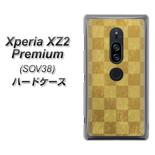 au エクスペリア XZ2 プレミアム SOV38 高画質仕上げ 背面印刷 ハードケース【619 市松模様-金(骨董風に傷んだイメージ)】