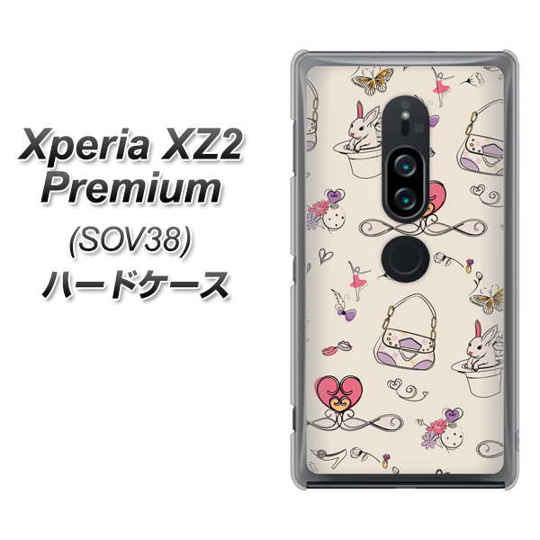 au エクスペリア XZ2 プレミアム SOV38 高画質仕上げ 背面印刷 ハードケース【705 うさぎとバッグ】