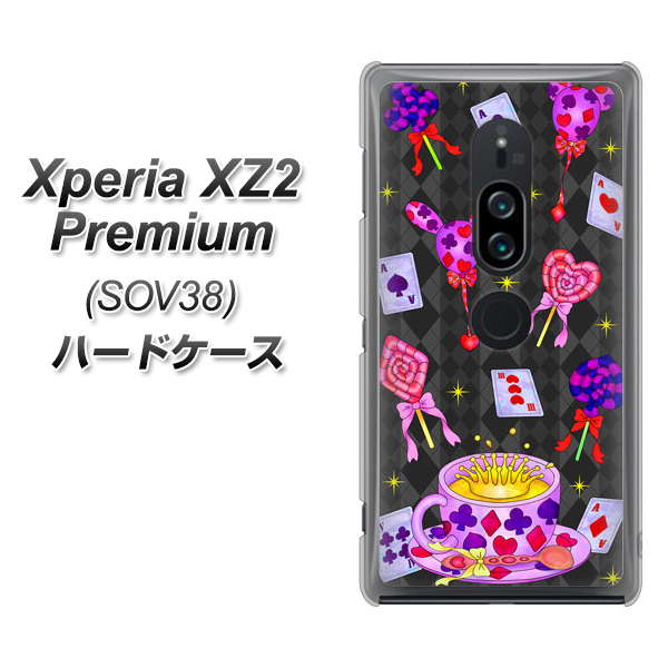au エクスペリア XZ2 プレミアム SOV38 高画質仕上げ 背面印刷 ハードケース【AG818 トランプティー(黒)】