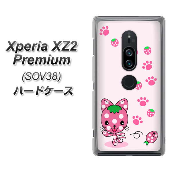au エクスペリア XZ2 プレミアム SOV38 高画質仕上げ 背面印刷 ハードケース【AG819 イチゴ猫のにゃんベリー(ピンク)】