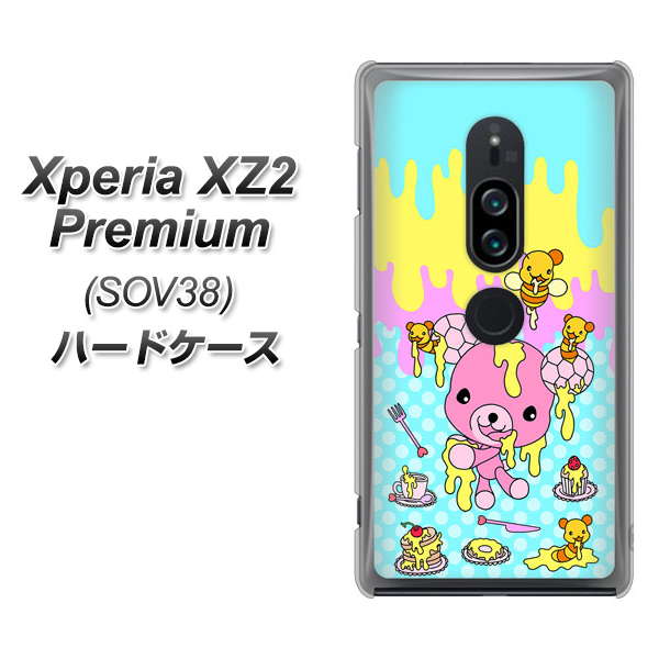 au エクスペリア XZ2 プレミアム SOV38 高画質仕上げ 背面印刷 ハードケース【AG821 ハニベア(水玉水色)】