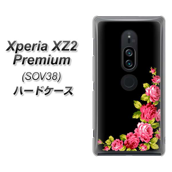 au エクスペリア XZ2 プレミアム SOV38 高画質仕上げ 背面印刷 ハードケース【VA826 バラのフレーム(黒)】