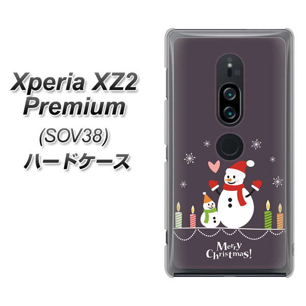 au エクスペリア XZ2 プレミアム SOV38 高画質仕上げ 背面印刷 ハードケース【XA809 雪だるまの親子】