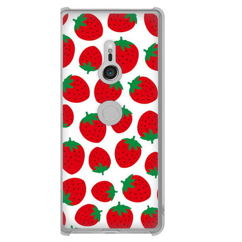 Xperia XZ3 SOV39 au 高画質仕上げ 背面印刷 ハードケース 小さいイチゴ模様