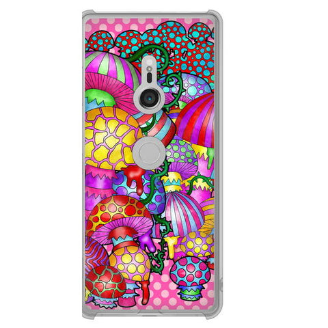Xperia XZ3 SOV39 au 高画質仕上げ 背面印刷 ハードケース むかいあぐる きのこ