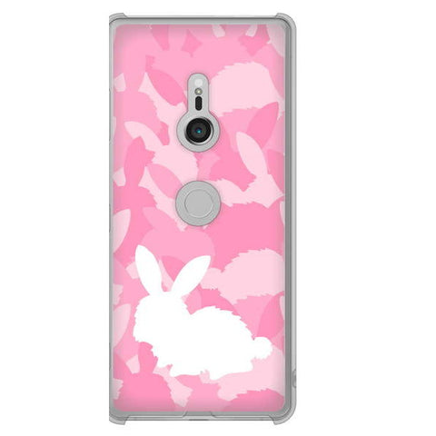 Xperia XZ3 SOV39 au 高画質仕上げ 背面印刷 ハードケース むかいあぐる うさぎ迷彩風