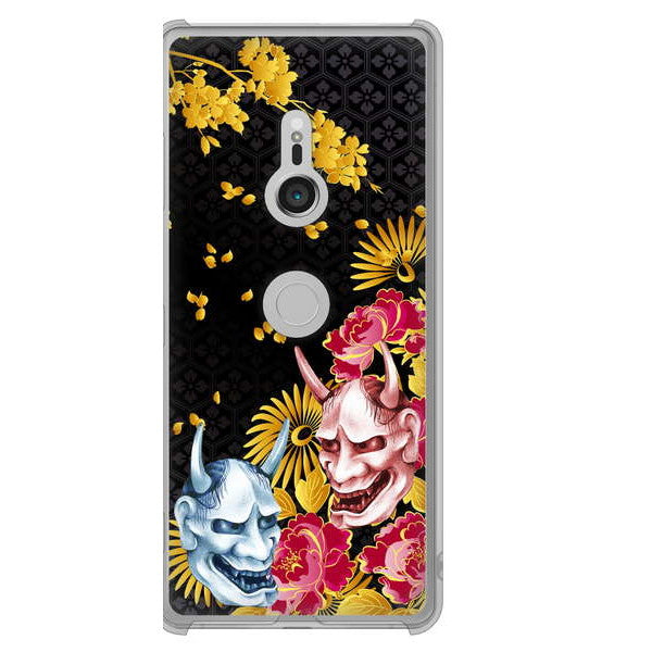 Xperia XZ3 SOV39 au 高画質仕上げ 背面印刷 ハードケース 【1024 般若と牡丹2】