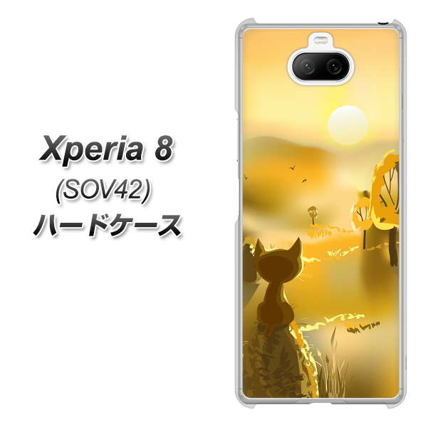 au エクスペリア8 SOV42 高画質仕上げ 背面印刷 ハードケース【400 たそがれの猫】