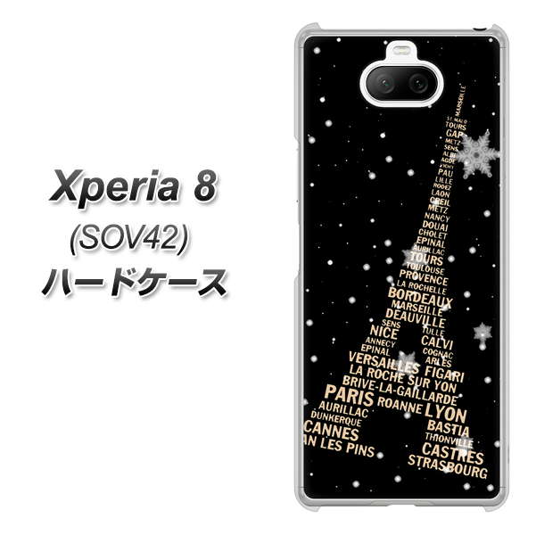 au エクスペリア8 SOV42 高画質仕上げ 背面印刷 ハードケース【526 エッフェル塔bk-gd】