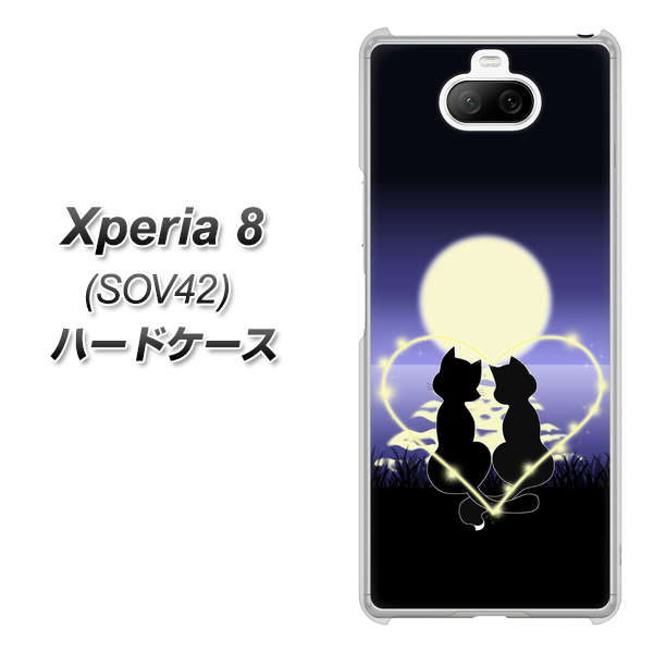au エクスペリア8 SOV42 高画質仕上げ 背面印刷 ハードケース【604 月明かりの恋ネコ】