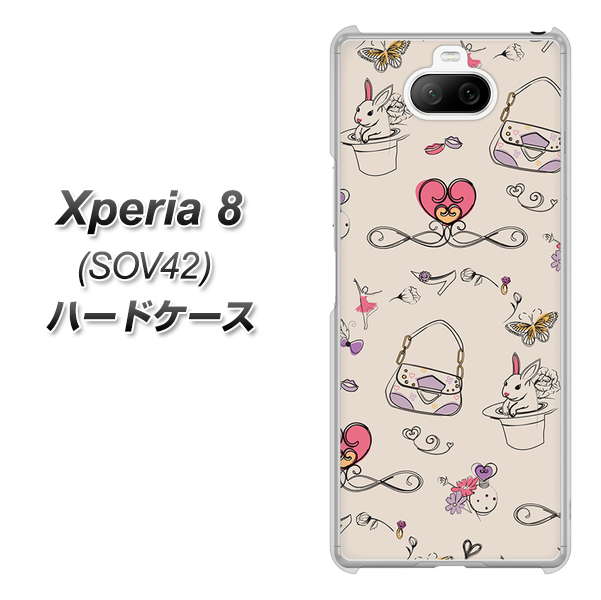 au エクスペリア8 SOV42 高画質仕上げ 背面印刷 ハードケース【705 うさぎとバッグ】