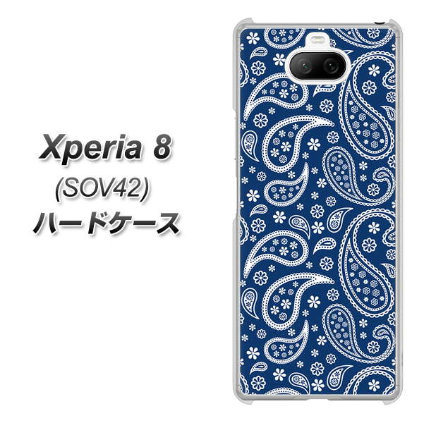 au エクスペリア8 SOV42 高画質仕上げ 背面印刷 ハードケース【764 ペイズリーブロンズブルー】