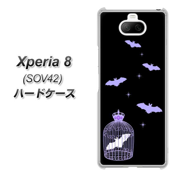 au エクスペリア8 SOV42 高画質仕上げ 背面印刷 ハードケース【AG810 こうもりの王冠鳥かご(黒×紫)】
