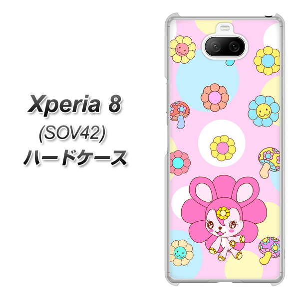 au エクスペリア8 SOV42 高画質仕上げ 背面印刷 ハードケース【AG823 フラワーうさぎのフラッピョン(ピンク)】