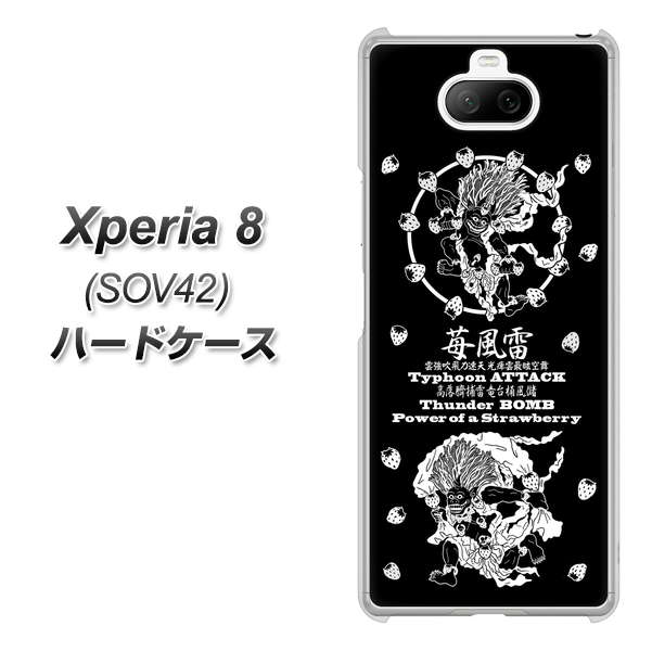 au エクスペリア8 SOV42 高画質仕上げ 背面印刷 ハードケース【AG839 苺風雷神(黒)】