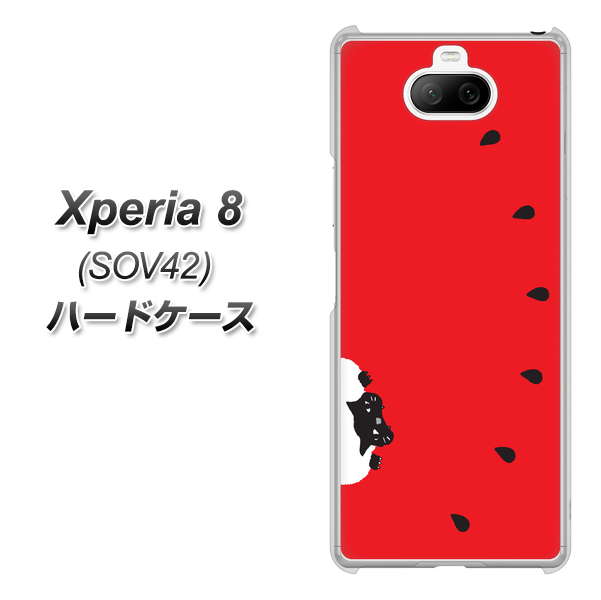 au エクスペリア8 SOV42 高画質仕上げ 背面印刷 ハードケース【IA812 すいかをかじるネコ】
