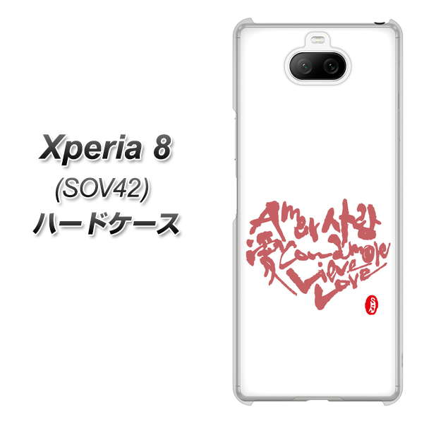 au エクスペリア8 SOV42 高画質仕上げ 背面印刷 ハードケース【OE801 世界の言葉で「愛(ホワイト)」のデザイン筆文字(書道家作品)】