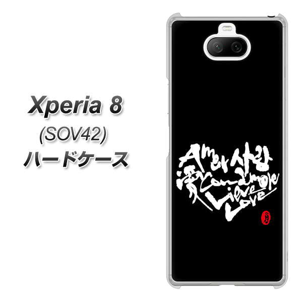 au エクスペリア8 SOV42 高画質仕上げ 背面印刷 ハードケース【OE802 世界の言葉で「愛(ブラック)」のデザイン筆文字(書道家作品)】