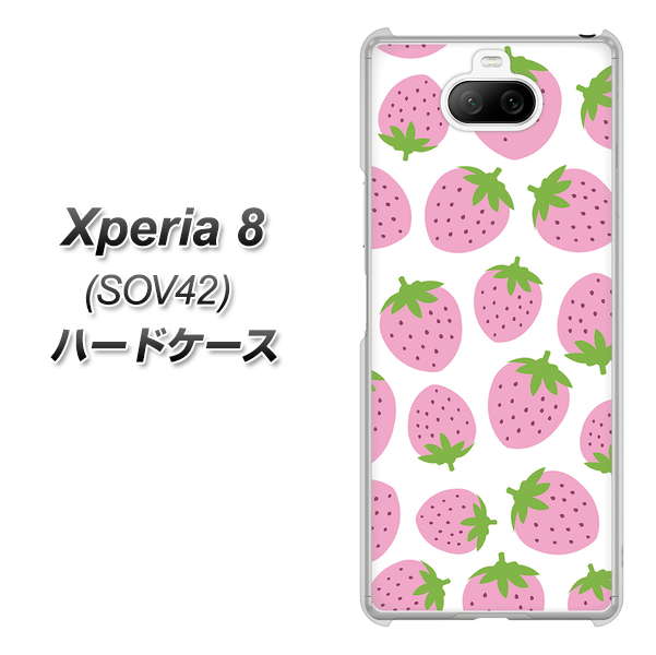 au エクスペリア8 SOV42 高画質仕上げ 背面印刷 ハードケース【SC809 小さいイチゴ模様 ピンク】