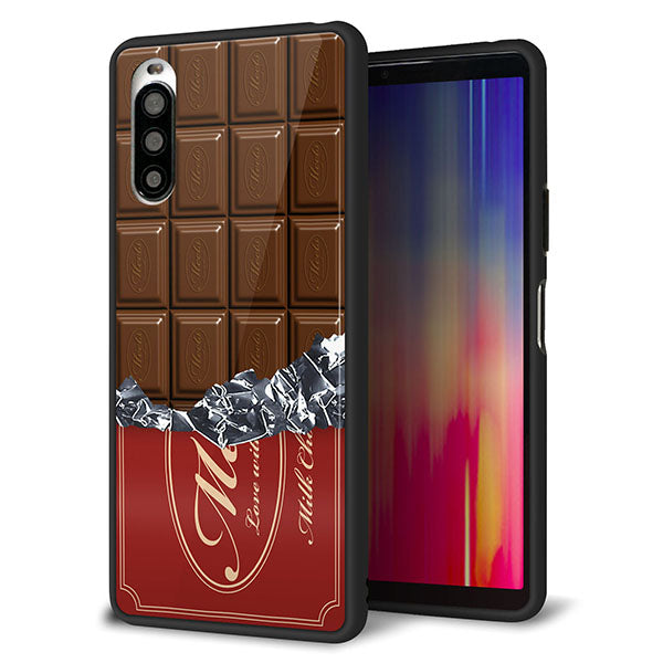 au エクスペリア10 II SOV43 強化ガラス&TPUスマホケース ガラプリ【535 板チョコ-エンジ包装】