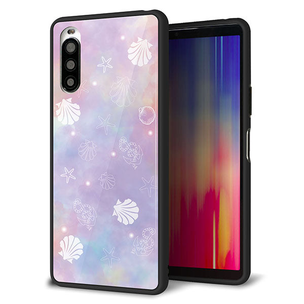 au エクスペリア10 II SOV43 強化ガラス&TPUスマホケース ガラプリ【KM883 シェル柄】