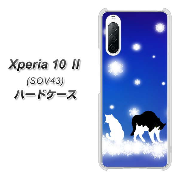 au エクスペリア10 II SOV43 高画質仕上げ 背面印刷 ハードケース【YJ335 雪の結晶 はちわれ】
