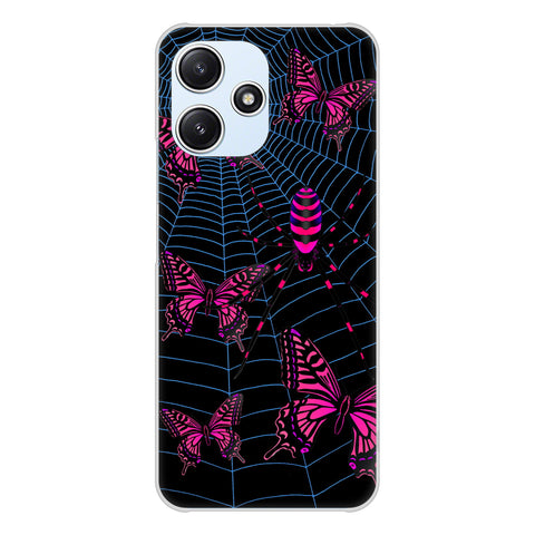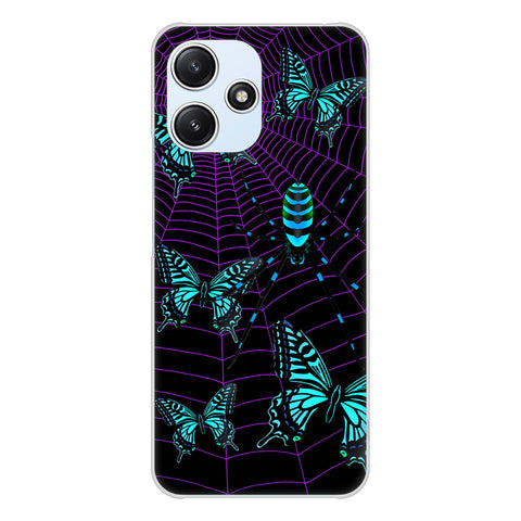 Redmi 12 5G XIG03 au 高画質仕上げ 背面印刷 ハードケースむかいあぐる 蜘蛛の巣に舞う蝶