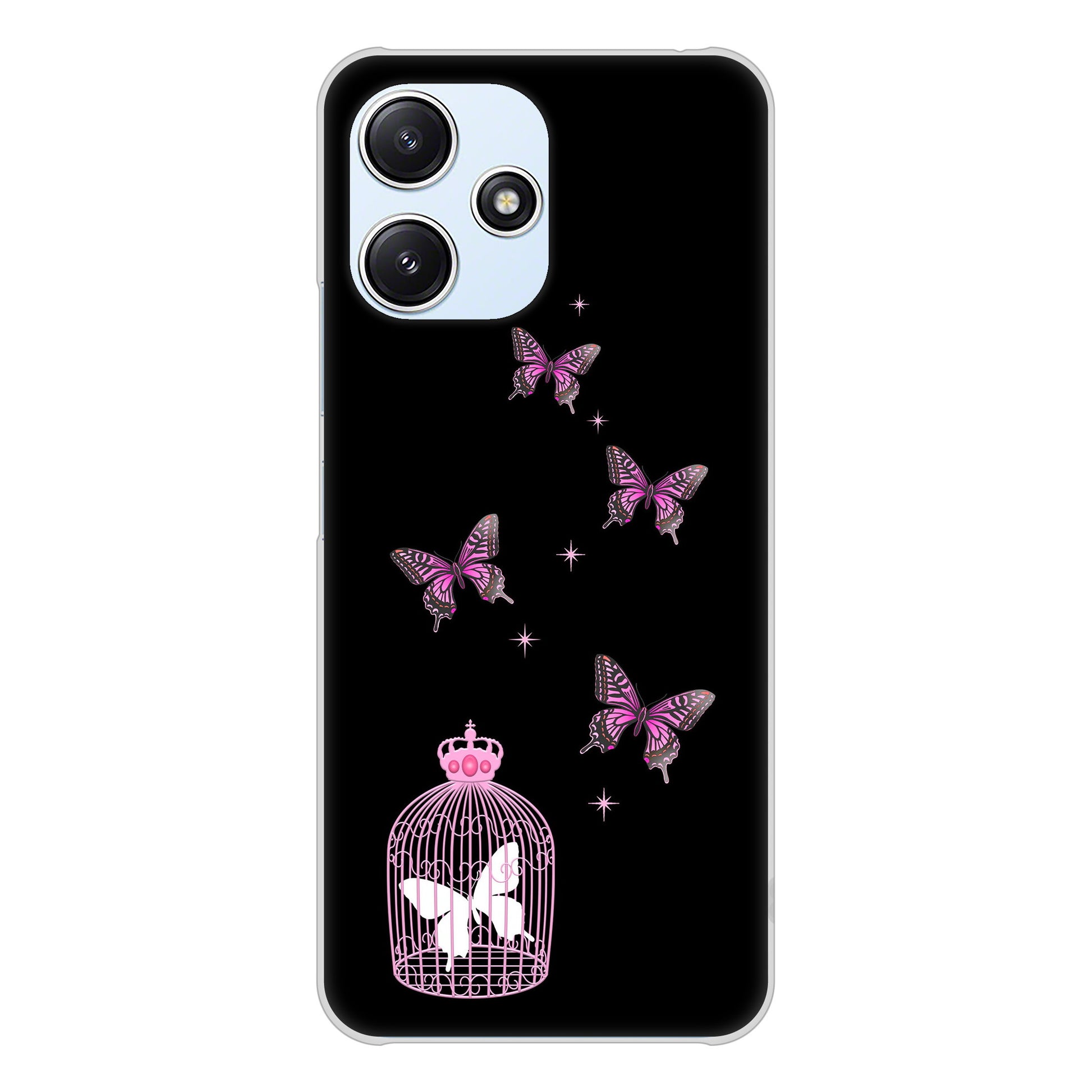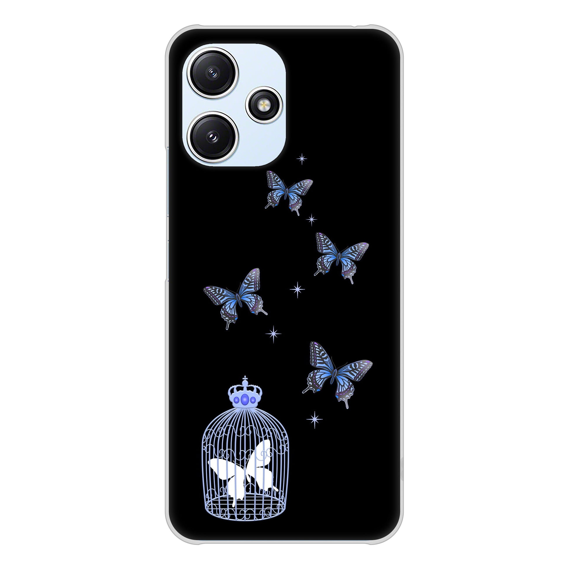 Redmi 12 5G XIG03 au 高画質仕上げ 背面印刷 ハードケースむかいあぐる 蝶の王冠鳥かご