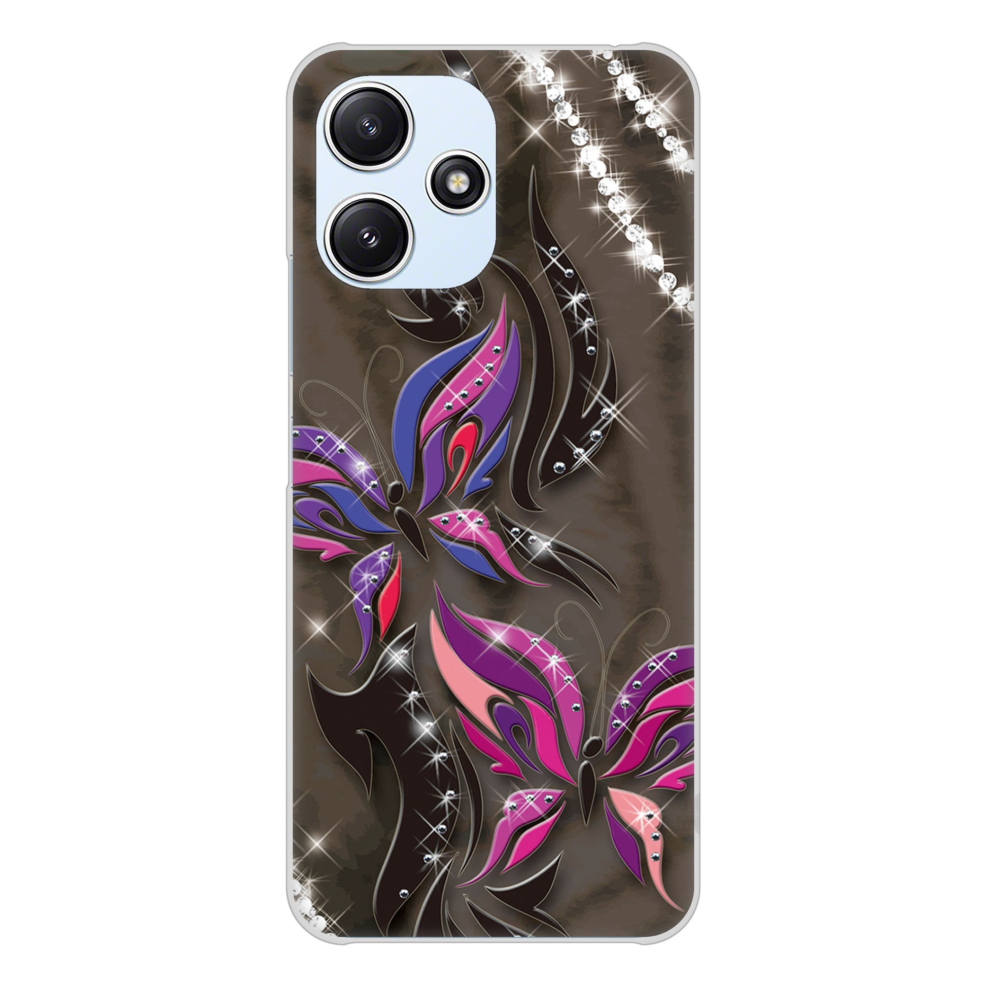 Redmi 12 5G XIG03 au 高画質仕上げ 背面印刷 ハードケース 【1164 キラめくストーンと蝶】