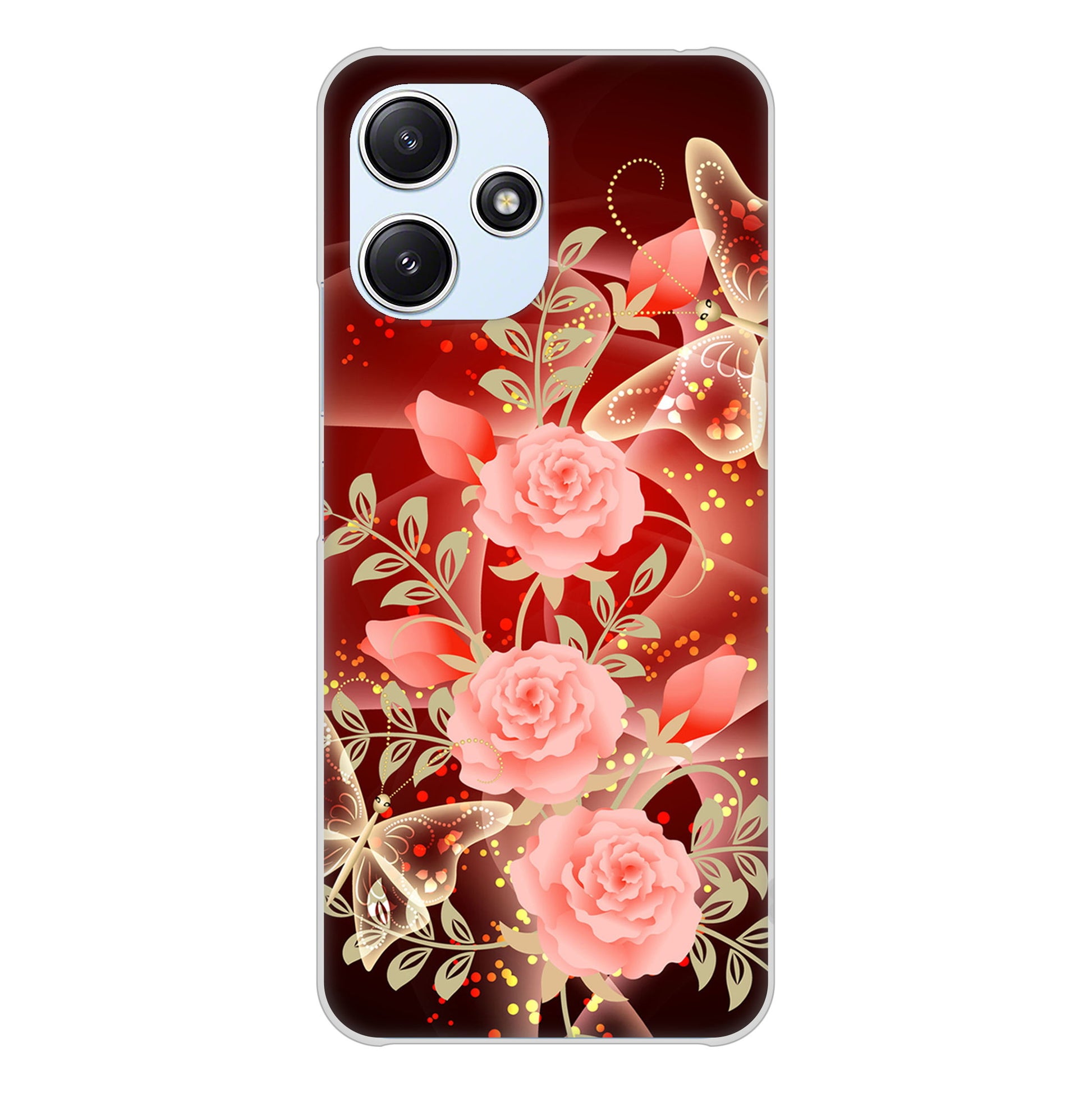 Redmi 12 5G XIG03 au 高画質仕上げ 背面印刷 ハードケース 【VA824 魅惑の蝶とピンクのバラ】