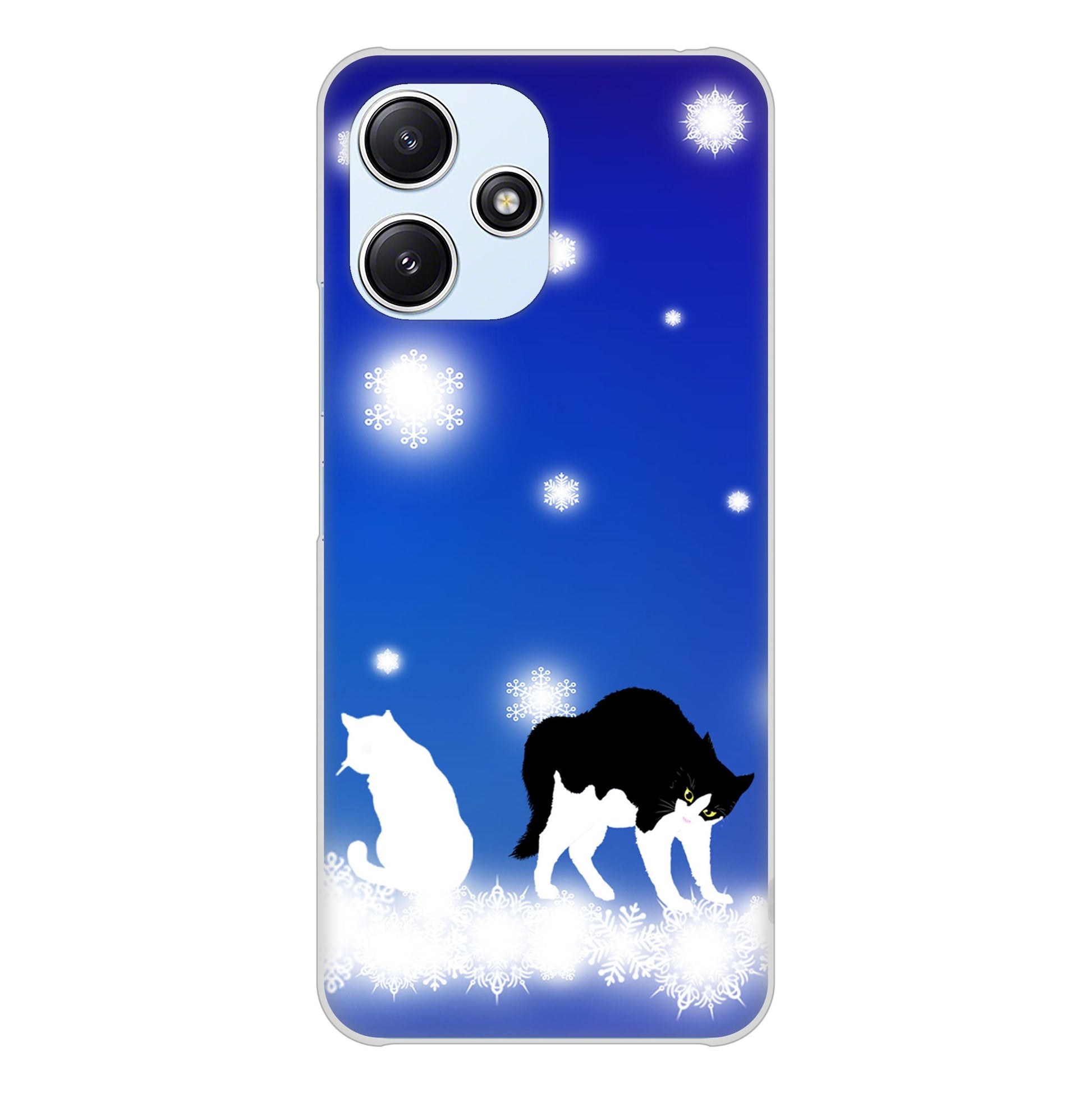 Redmi 12 5G XIG03 au 高画質仕上げ 背面印刷 ハードケース 【YJ335 雪の結晶 はちわれ】