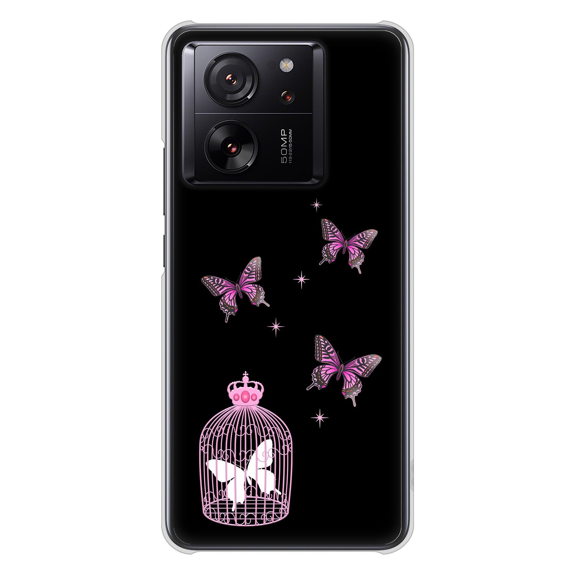 Xiaomi 13T XIG04 au 高画質仕上げ 背面印刷 ハードケースむかいあぐる 蝶の王冠鳥かご