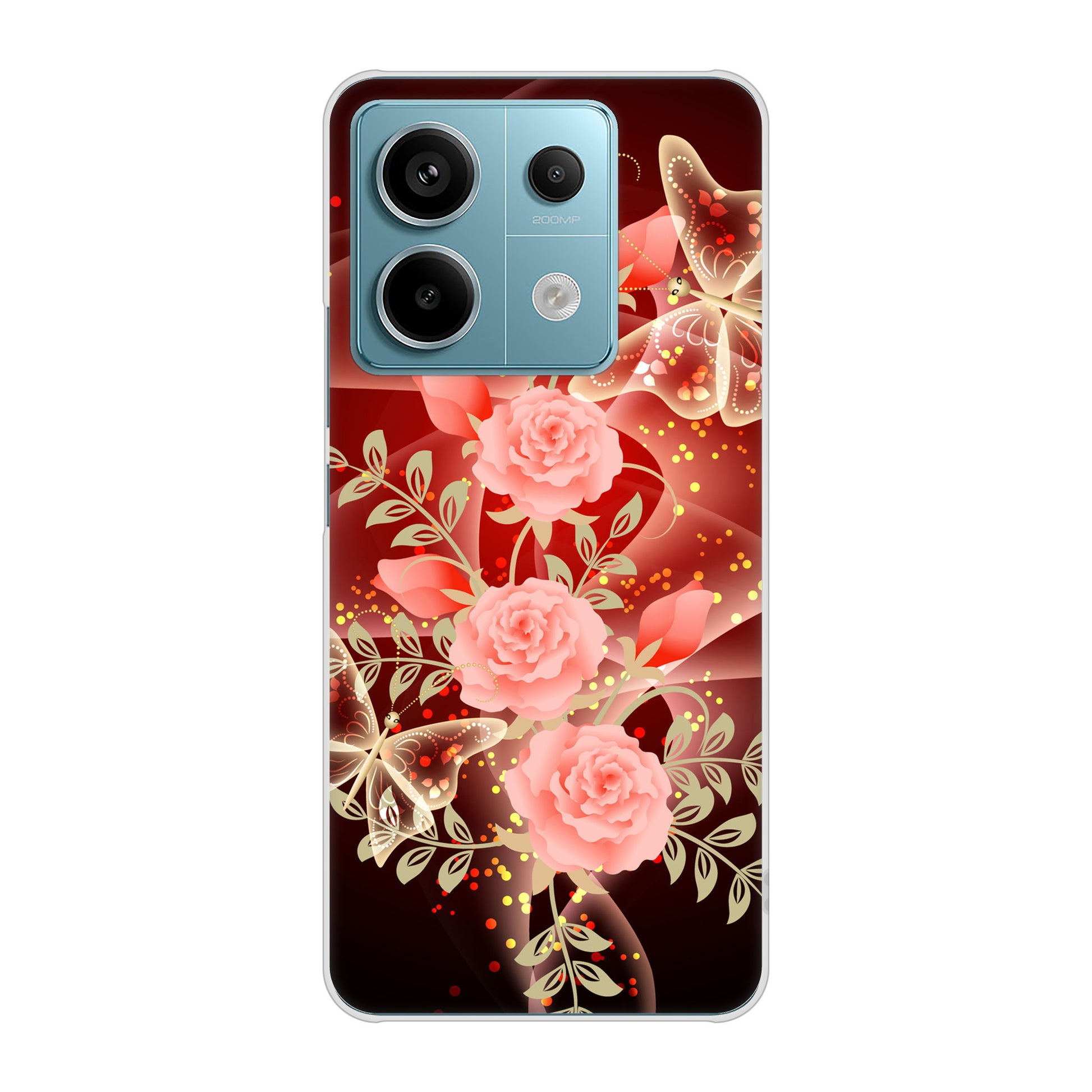 Xiaomi Redmi Note 13 Pro 5G XIG05 au 高画質仕上げ 背面印刷 ハードケース 【VA824 魅惑の蝶とピンクのバラ】