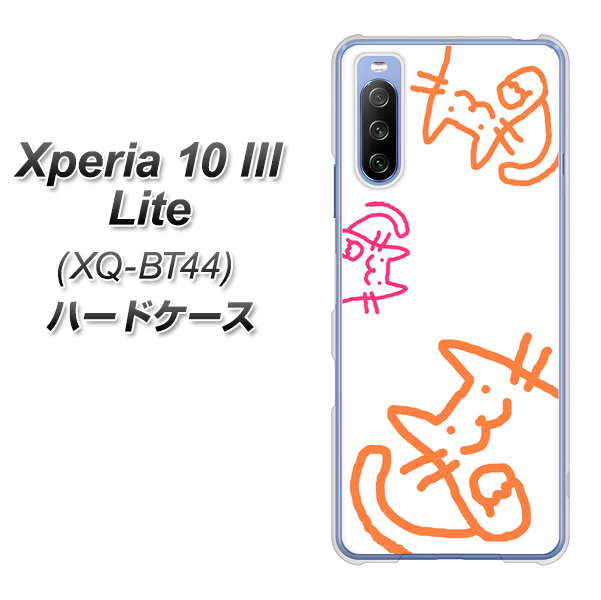 SIMフリー エクスペリア10 III Lite XQ-BT44 高画質仕上げ 背面印刷 ハードケース【1098 手まねきする3匹のネコ】