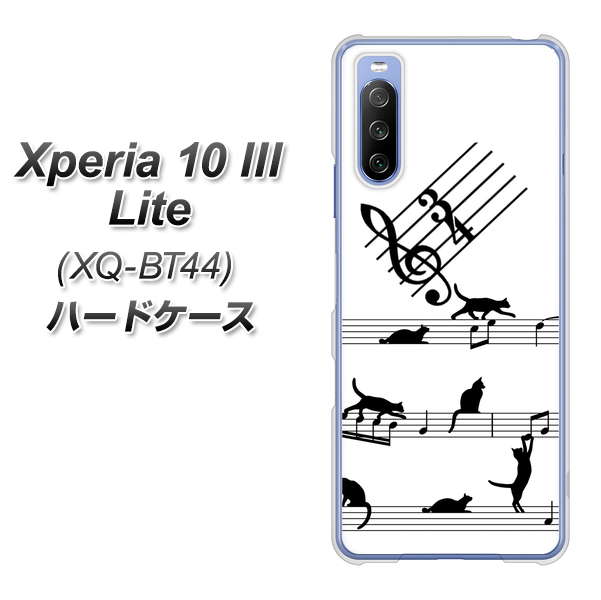 SIMフリー エクスペリア10 III Lite XQ-BT44 高画質仕上げ 背面印刷 ハードケース【1112 音符とじゃれるネコ2】