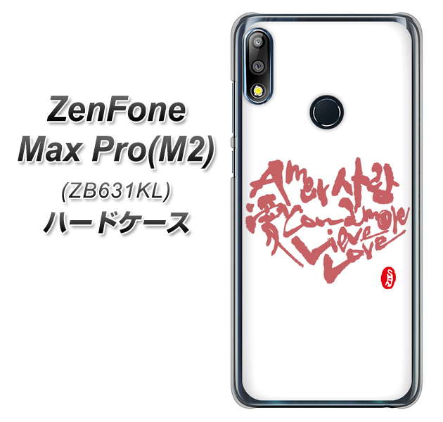 ZenFone(ゼンフォン)Max Pro(M2) ZB631KL 高画質仕上げ 背面印刷 ハードケース【OE801 世界の言葉で「愛(ホワイト)」のデザイン筆文字(書道家作品)】