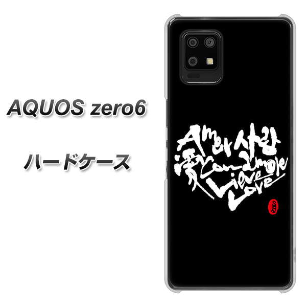 SoftBank アクオスゼロ6 高画質仕上げ 背面印刷 ハードケース【OE802 世界の言葉で「愛(ブラック)」のデザイン筆文字(書道家作品)】